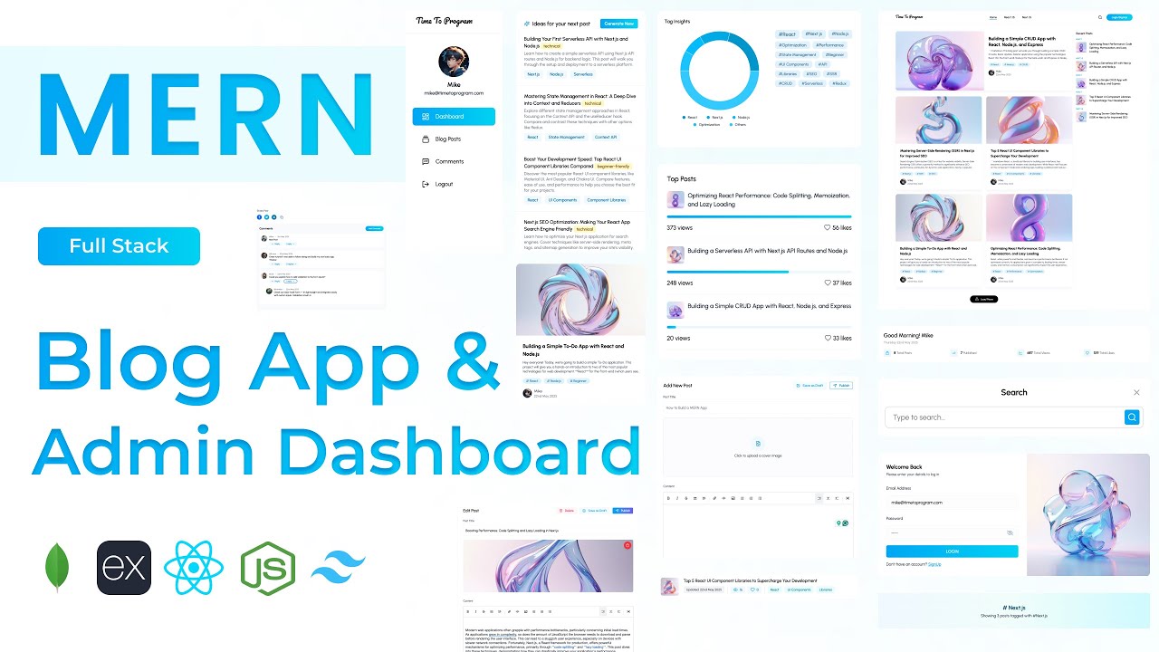 Build a full-stack Blog application using MongoDB, Express, React, and Node.js. Features AI-powered blog post generation and comment replies via Gemini API, full markdown support with live syntax highlighting, slug-based URLs, tag filtering, real-time search, a post view counter, like/clap button, draft and publish toggle, admin dashboard with analytics, and a comments section — the most feature-complete project in the series.